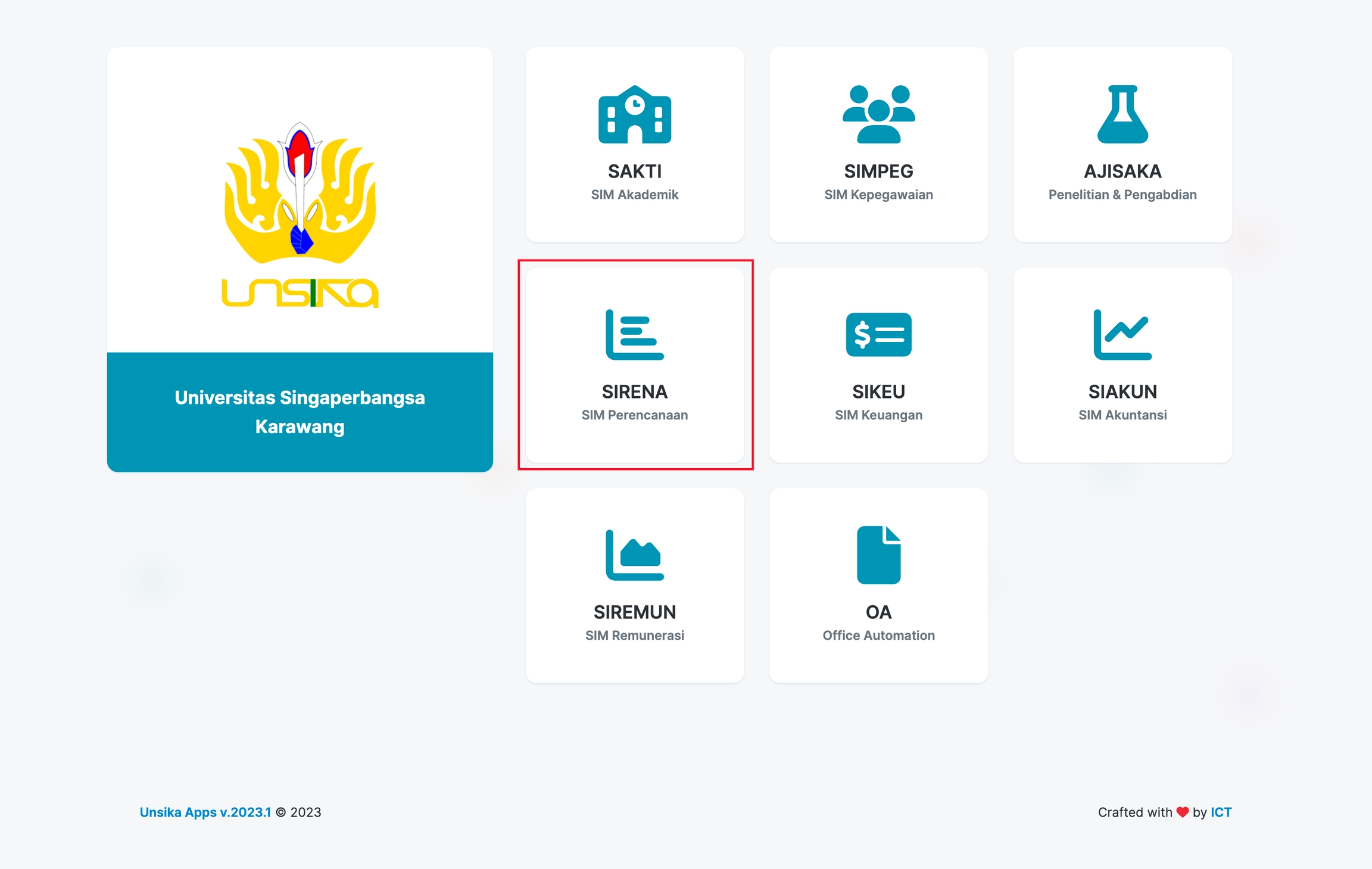 SIRENA merupakan SI yang menerapkan sistem tertutup, artinya hanya pengguna yang memiliki akses saja yang dapat menggunakan SI ini. Untuk mengakses SI ini dapat melalui laman portal utama di alamat ... kemudian klik pada menu SIRENA seperti pada gambar berikut: